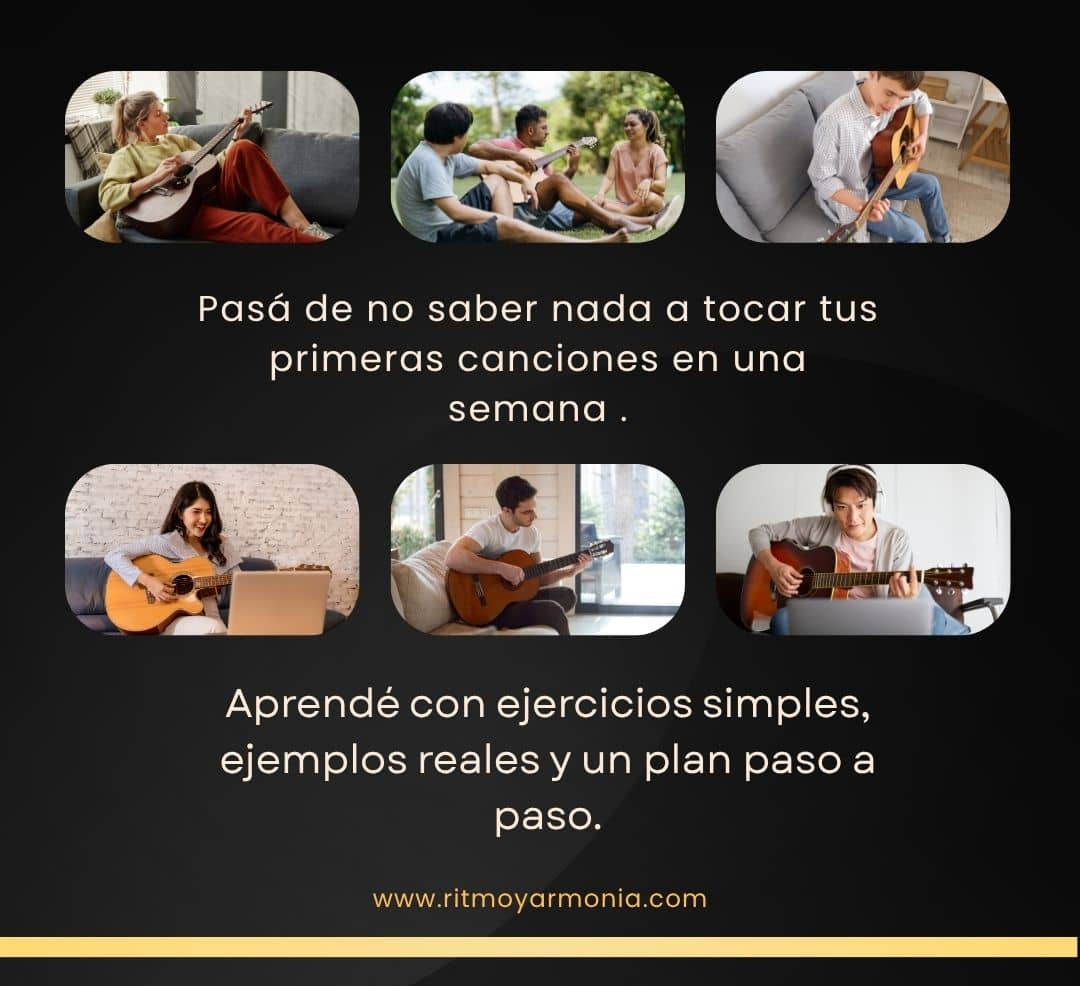 Un plan claro y práctico para empezar desde cero y tocar tus primeras canciones en una semana —sin teoría aburrida.